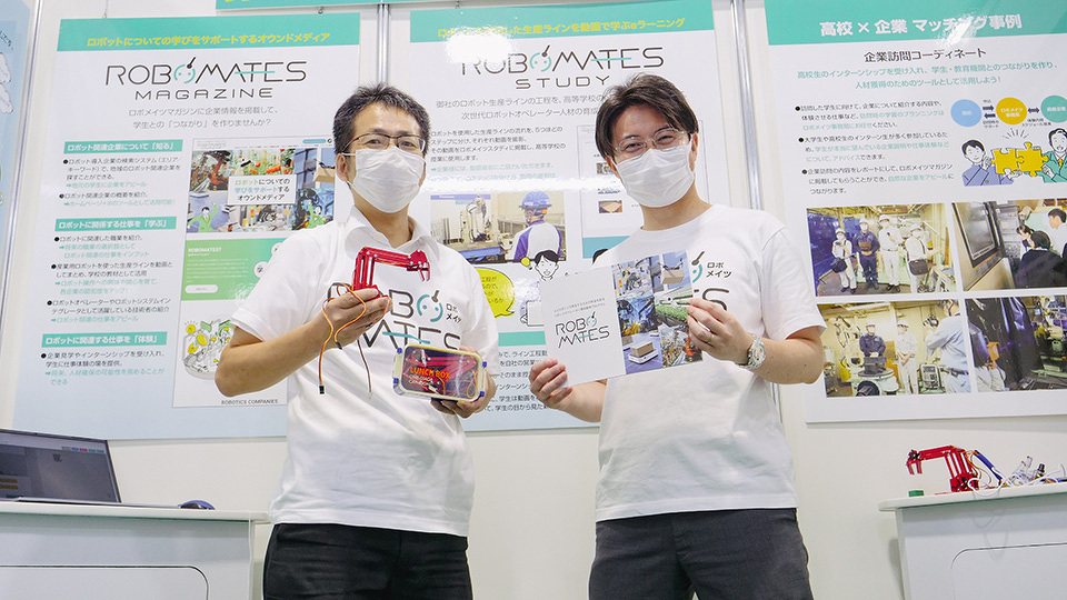 弊社は、産業用ロボットオペレーター育成のための教育プロジェクト「ロボメイツ」をPRするブースを出展しました。学校や企業と連携しながら授業やイベントなどで活動する様子を伝えるパネル展示のほか、ロボット教材を使ったデモンストレーション、学びをサポートするWebマガジン「ロボメイツMAGAZINE」の紹介などを行いました。