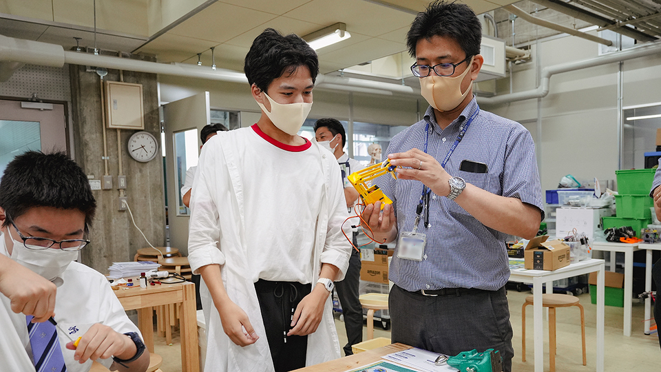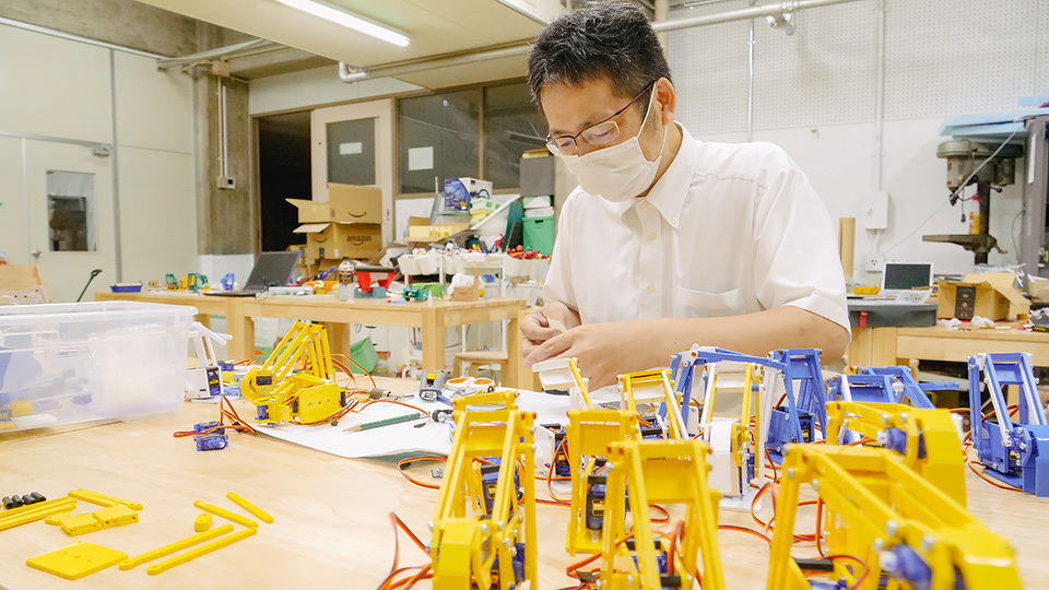 2022年8月には、地元・尼崎市にある産業技術短期大学様(以下、産技短大)との産学連携が実現。同大機械工学科の二井見博文教授を中心に、共同でロボット教材やカリキュラムを開発しています。
