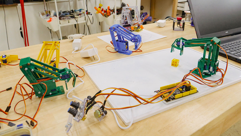 ミニマル工場を取り入れた授業を市内小学校向けに展開することを目標に、現在はまずアームロボットの開発を中心に進めています。