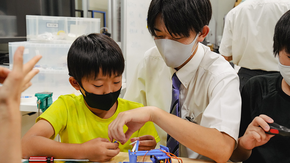 尼崎双星高校の情報技術部には、ロボットのコンテストで強豪・灘高を破って優勝するなど輝かしい実績があります。この日も、早々に組み立てを終えた部員が小学生へ自発的に教えてあげるなど、実力もさることながら、心優しい一面も見せてくれました。
