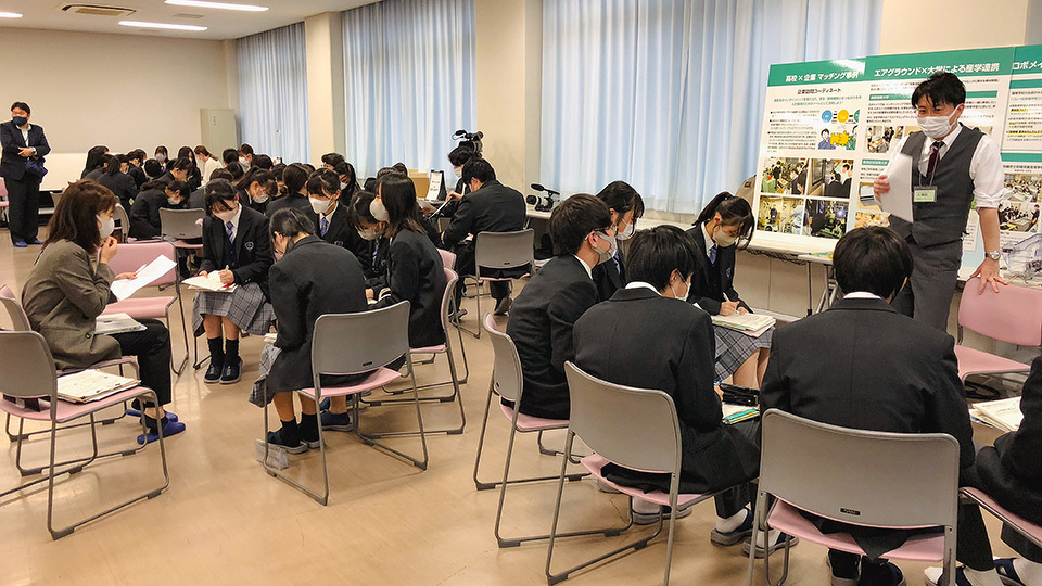 2022年に入っても新型コロナ禍で、企業見学やインターンシップを実施したくてもできない難しい状況が続きました。そんな中、高校の先生方からは「こちらから企業を訪問することは難しいけれど、企業から来ていただけるならぜひお願いしたい」とのご要望がありました。そこで、2022年度は、従来の学生が企業訪問する形式とは逆に、企業が学校へ出張する形で「お仕事紹介・取材イベント『ワザカタログ』」を企画しました。