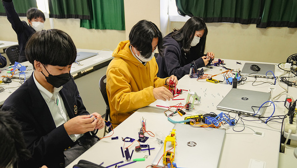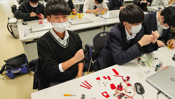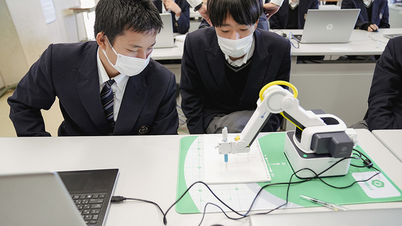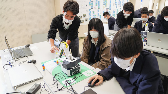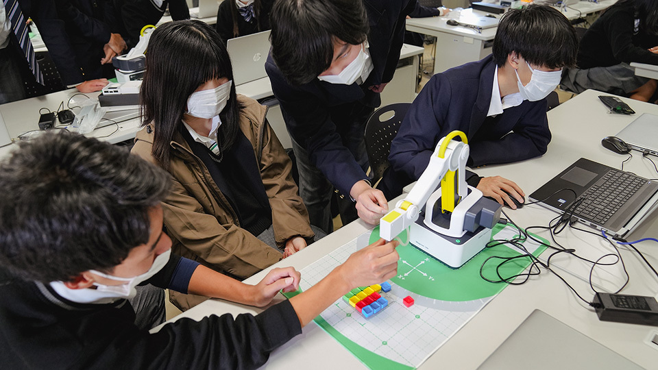 2022年5月から始まった授業では、アームロボットをプログラミングで操作する体験学習を実施。兵庫県立川西明峰高等学校(以下、川西明峰高校)の生徒たちは、面白さや驚きを感じたようです。