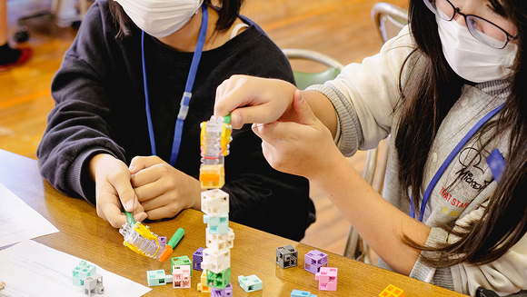 尼崎市立尼崎双星高等学校(以下、尼崎双星高校)商業学科3年生26人は、2022年9月の1回目の授業の後、振り返りをして教え方を考えたり、プログラミングで使う台をブロックと棒で作ったりと、準備を重ねてきました。