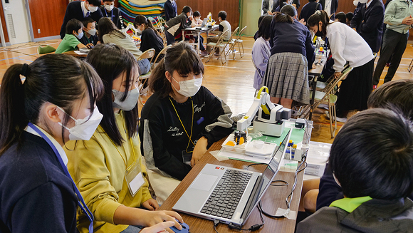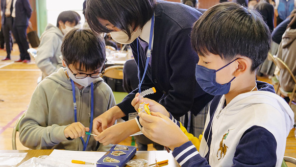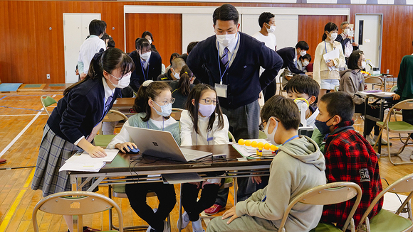 高校生が数人で小学生のグループを受け持つことで先生方の負担を減らし、小学生が交流と体験を楽しみながら授業を受けられます。高校生にとっても、人に教えることで主体的に学び、コミュニケーション能力を伸ばす貴重な機会になります。