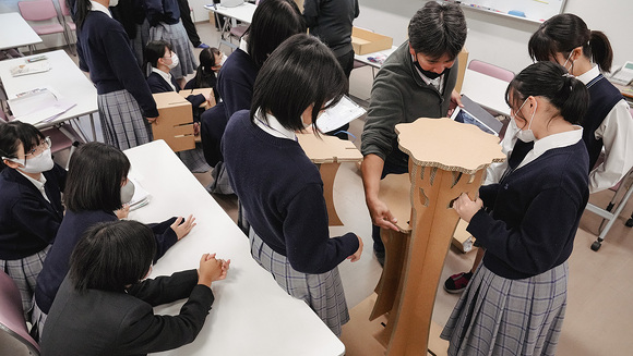 参加した生徒は「商品や環境について詳しく聞いた。紙資材である『リボード』でできた机と椅子は言われるまでリボードだと気付かなかったし、実際に座っても大丈夫だったので、少しずつでも学校で導入されたらうれしい。今回の授業を通して初めてリボードという素材を知り、たくさんの人に知ってほしいと思った」と感想を述べています。