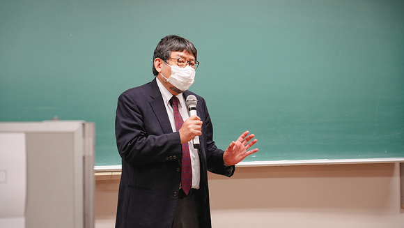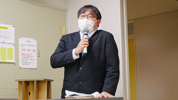 学生による発表後には、「尼崎市 長期実践型インターンシップ報告会」の企画運営を担当した当社から、代表の畠中がご挨拶とインターンシップ活動の報告を行いました。また、「尼崎近郊での活動報告会」の企画運営をご担当された関西国際大学の南畑淳史先生(社会学部社会学科講師)からご挨拶をいただき、同大の学生で当社のインターンを経験した3人が感想を話しました。