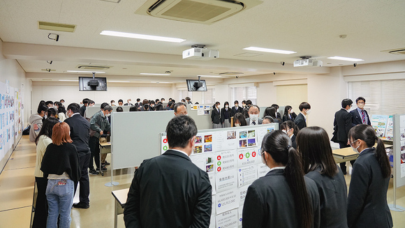「尼崎近郊での活動報告会 および 尼崎市 長期実践型インターンシップ報告会」が2023年2月3日に関西国際大学で開かれました。尼崎市立尼崎双星高校、関西国際大学、園田学園女子大学から学生が参加し、活動について発表。高校・大学の先生方や尼崎市の関係者、企業の方に多数ご来場いただき、交流を深めました。