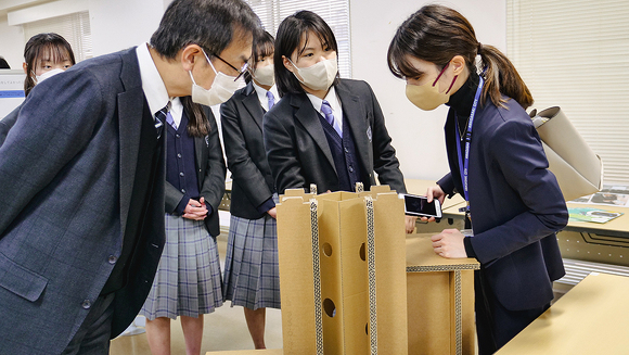 尼崎双星高校編 2022年度⑥商品開発班/カワグチマック工業様の段ボール加工技術でキャットタワーを製作