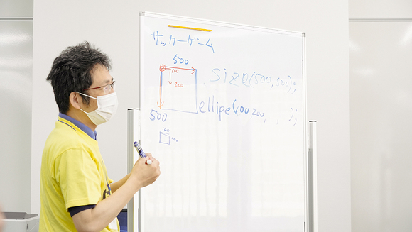 生徒たちは初日の講座で、パソコンの基本的な操作について「Processing(プロセシング)」というプログラミングソフトを使いながら学びました。