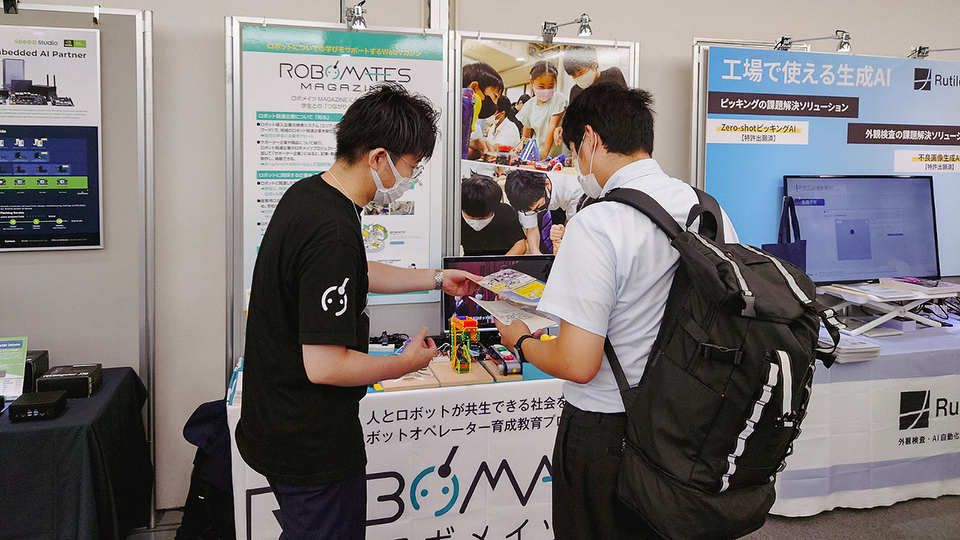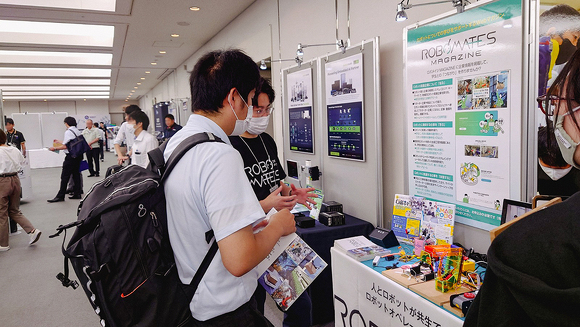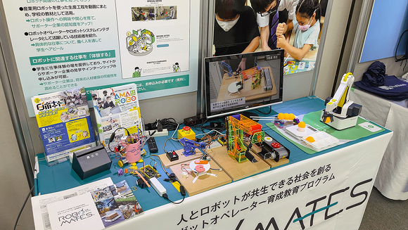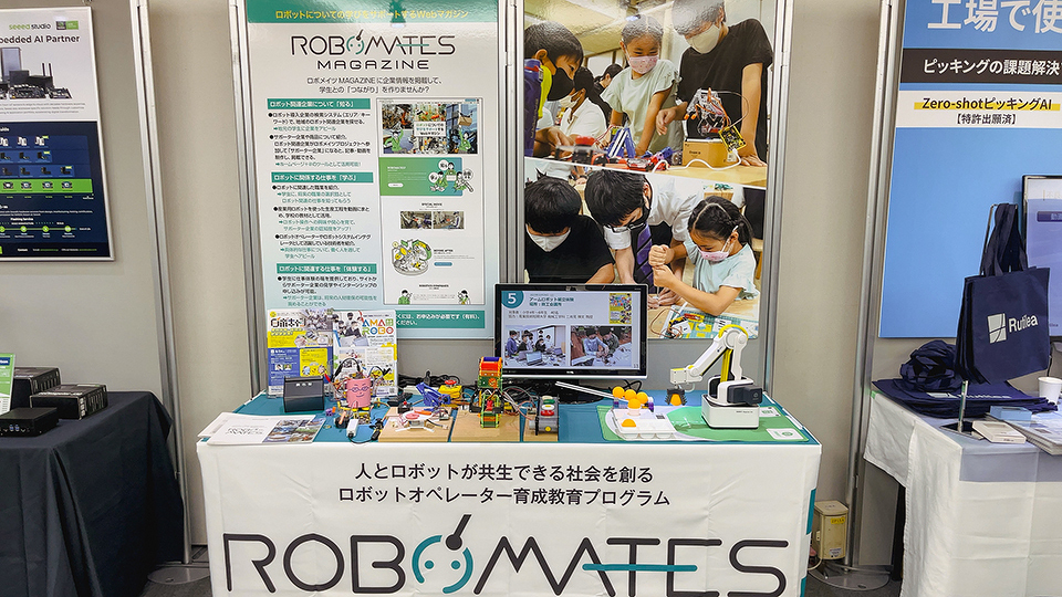 企業ブースでは、ロボメイツの活動や開発しているロボット教材、この6月に開講したロボットSTEAMスクール「ロボキャン」の取り組みなどを紹介しました。
