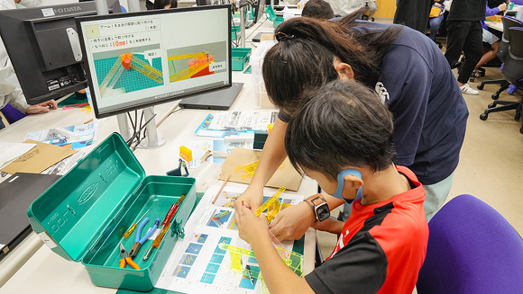 うまくいかない時は自分で工夫しながら、サポートの高校生のアドバイスも聞いて挑戦を繰り返していました。