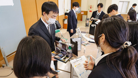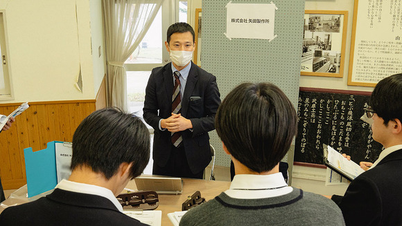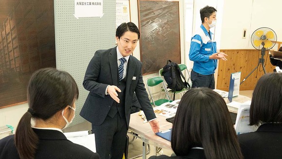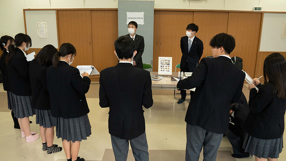 出張講座は、企業や団体が高校に出向いて高校生と交流し、魅力発信を行うことを目的として開かれました。高校生は「見る」「触れる」「話す」体験を通して地元企業を知り、働くことに対する考えを深めていきます。