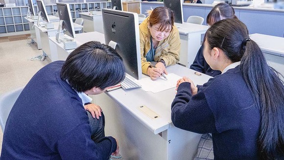 スクリーンに映し出して説明するスライド資料を作ったり、台本を作って話す練習をしたり、プレゼンテーションの体験学習の場にもなりました。