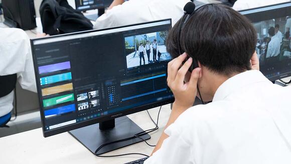 「総合的な探究の時間」の授業は、ゼミや研究テーマを選ぶところからスタートしました。映像ゼミに決まった生徒は、班分けや企業選定を経ていよいよ動画制作へ。