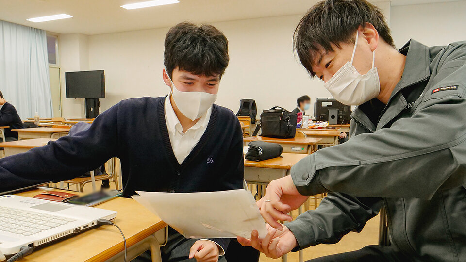 商業学科の「課題研究」の時間に授業を行い、ロボット体験イベントを開くことになった一方で、情報技術部の生徒たちも「イベントへ協力します」と言ってくれていました。予定したイベントは新型コロナウイルス感染拡大の影響で残念ながら中止となり、実現しませんでしたが、地元のものづくり企業を見学・取材したり、同部の活動を紹介する動画をつくったりするなど、生徒たちと4日にわたって活動することができました。