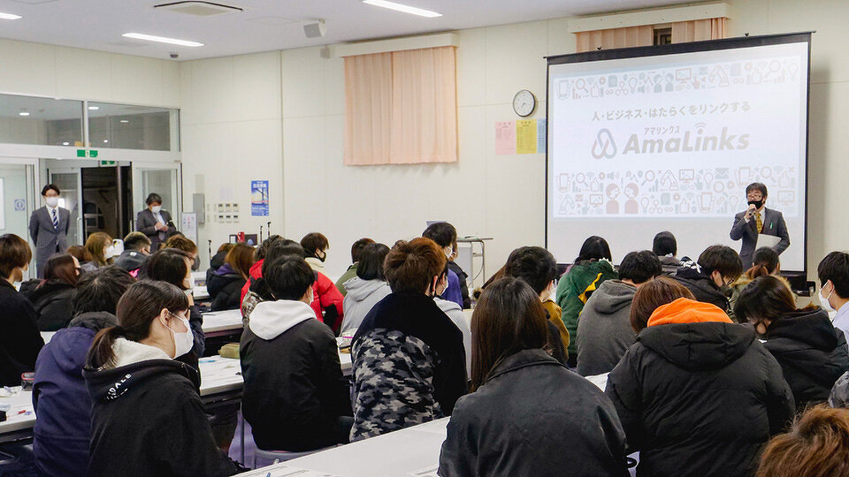 尼崎市立琴ノ浦高校で2021年2月、あまがさきビジネス×就労マッチングプロジェクト「アマリンクス」の一環で地元企業を紹介するワークショップが開かれました。私たちはこのプロジェクトで、市内の企業や団体を紹介するWebサイトの制作に携わりました。ワークショップでは、「生徒へ進路について考える機会を提供できれば」と地元企業を取材した動画を上映したほか、企業を取材した弊社の担当者が当時のエピソードを紹介しました。高校生はどのような反応を見せたのでしょうか。