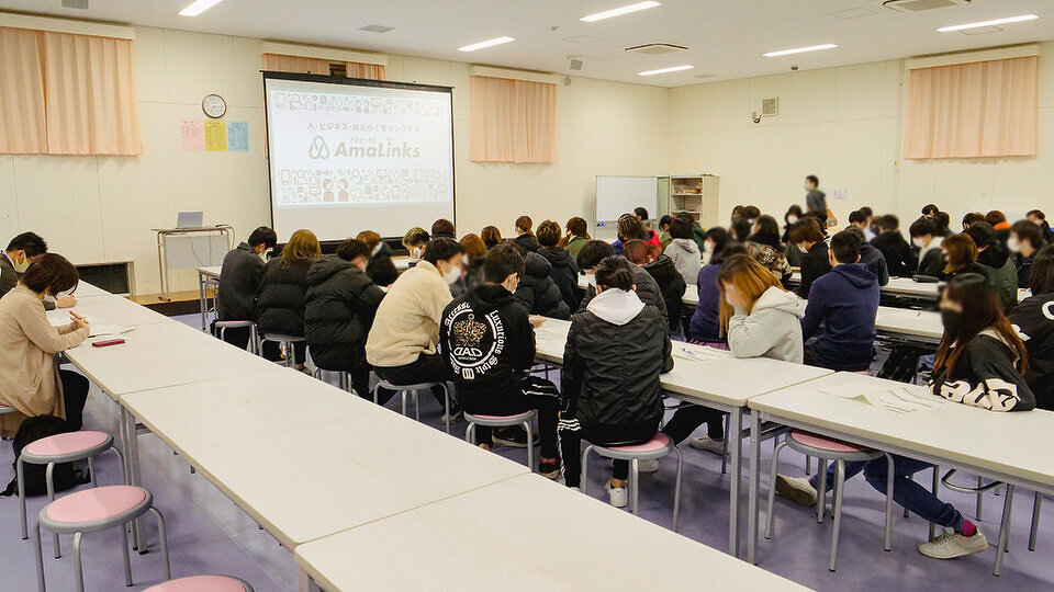 アマリンクスのWebサイトが2021年1月にオープンした後、企業を取材して制作したPR動画を学校で上映するワークショップを尼崎市立琴ノ浦高校で開くことになりました。