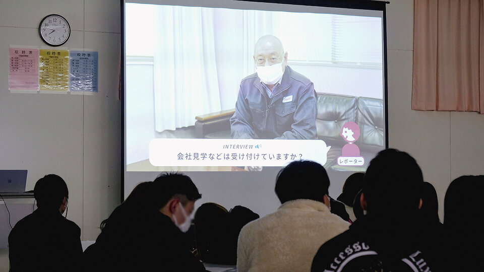 高校生たちは、動画を見て地元企業の社長さんや社員さんの話に熱心に耳を傾けました。仕事について「自分ごと」として考える機会になったようです。