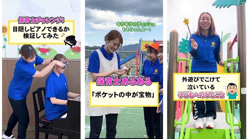 園の雰囲気や先生方の人柄が伝わる子どもへの声掛け実例、保育士さんあるあるなど楽しいコンテンツで、SNSショート動画の総再生回数が3200万回を超え、フォロワー数は2万3000人以上!