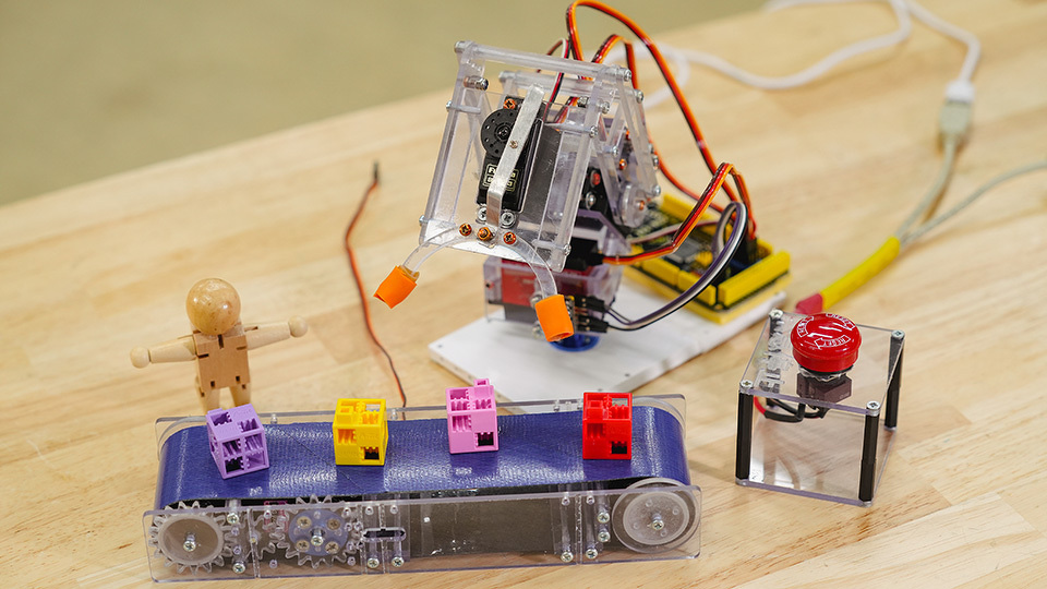 今回の産業メッセでは、同大学が開発・製作した小学生向けの教材用ロボットを展示します。さらに、来場者が触って操作体験をすることもできます。