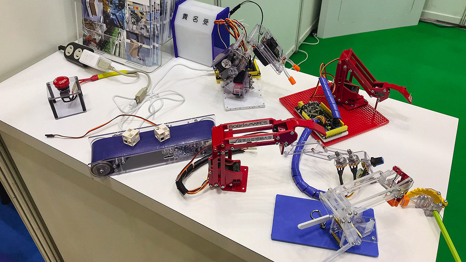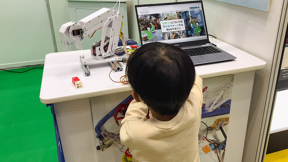 ロボメイツ事業では、日本の産業界を担う技術者の育成を目的とする「産業技術短期大学」(兵庫県尼崎市西昆陽1、1962年開学)と相互に協力・連携しています。今回も、同大学が開発・製作した小学生向けの教材用ロボットを展示します。来場者が触って操作体験をすることもできます。